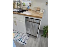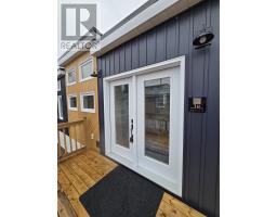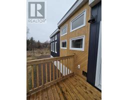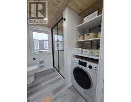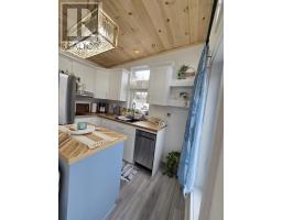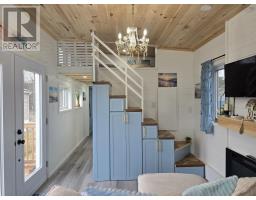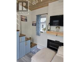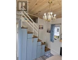 Custom Tiny Home Effortless Living. Elevated Design. A beautifully crafted custom tiny home offering refined, one-level living with a thoughtfully designed layout that feels both open and inviting. Soaring ceilings up to 12 feet and expansive windows fill the space with natural light, creating a bright, airy atmosphere. The open-concept living area is anchored by a modern fireplace feature walladding warmth and understated elegance. The kitchen blends function and style with rich wood countertops, a center island, and included appliances. Custom craftsmanship carries throughout, with built-ins and smart storage solutions at every turn. The bedroom offers a peaceful retreat, while the loft provides flexible additional space for guests, work, or relaxation. Highlights Include: In-suite laundry with overhead storage Custom staircase with integrated storage Stained cedar exterior accents & new deck Electric baseboard heating + fireplace 200 amp service Approx. 11 x 36 + 9 x 9 loft A turnkey opportunity in a prime Bible Hill mini home park location, perfect for those seeking low-maintenance living with a refined edge. (id:31415)