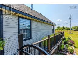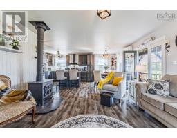 Nestled just minutes from the prestigious Fox Harbr Resort, this charming 1.5-storey A-frame home blends comfort and character in a peaceful coastal setting. With sandy shorelines just a short stroll away and the ability to walk the sand bars out to Oak Island, this property offers the perfect balance of relaxation and adventure. Step inside and feel instantly at home with a warm and inviting layout. The main floor features a cozy living room with wood stove (ready for cooler weather), dining area, and a functional kitchen ideal for family meals or entertaining friends. A secondary bedroom which is currently used as a den includes a pantry and laundry area, while the bright 3-piece bath is spacious and accessible on the main floor. Enjoy the sunshine year-round from the sunroom porch with pull-down shades or the screened solarium, perfect for quiet mornings or summer evenings. Upstairs, the primary bedroom offers a peaceful retreat with its own balcony and a laminate walk-in closet. A heat pump keeps the home comfortable in every season, complemented by an electric fireplace with mantle for added charm. Appliances have been updated, including recent additions of stove, dishwasher, and washer within the past year. The property also includes a 16x16 heated and wired bunkee, perfect for adding another room for visiting family, friends, or a private workspace. A 24x30 wired garage (220 amp, ready to connect) and 8x10 shed provide plenty of storage for tools, toys, and seasonal gear. The home sits on an insulated 4 ft frost wall foundation and has a french drain system to offer durability and peace of mind. With its inviting spaces and thoughtful updates, this property is ideal for those looking for a seasonal getaway or a cozy year-round residence close to beaches, golf, and amenities. (id:31415)