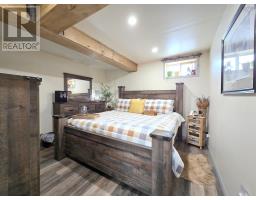 Welcome to this tastefully and thoughtfully decorated 1/5-storey home offering three full levels of comfortable living space, perfectly suited for families or anyone needing flexible room to grown. The main floor welcomes you with a bright foyer at the front entry, while the back porch provides convenient access to the patio and eat-in kitchen that flows easily into the cozy living room - ideal for everyday living and entertaining. Upstairs, the second level features two generous bedrooms and a full 4-piece bathroom, creating a private and functional sleeping area. The full developed basement adds exceptional value with 8-foot ceilings, poured concrete construction, and a walkout for easy exterior access. This level includes a comfortable rec room, a large bonus room with a walk-in closet, and a full bathroom - perfect for guests, a home office, or additional living space. Heating is efficient and versatile with min-split heat pump, electric baseboard heaters, and an airtight wood stove that distributes heat though ductwork. A generator hookup offers added peace of mind. Outside, relax or entertain on the patio or backyard firepit area while taking in the expansive views, and enjoy the convenience of being just a 2-minute walk to the high school. A solid, thoughtfully laid-out home with great features, including metal roof, plenty of parking, and beautiful views - this one is well worth a look. (id:31415)